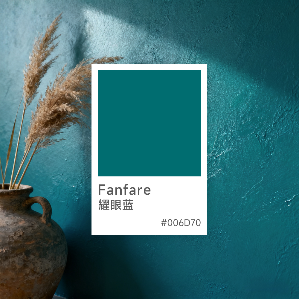 色彩是空间的情绪,也是生活的诗歌。“Fanfare耀眼蓝”以其独特的低饱和度蓝绿色调,为我们提供了一种在2025年秋季表达自我、安顿身心的绝佳方式。它不只是一抹颜色,更是一种生活态度的宣言——追求内在的宁静,却不失生命的活力。