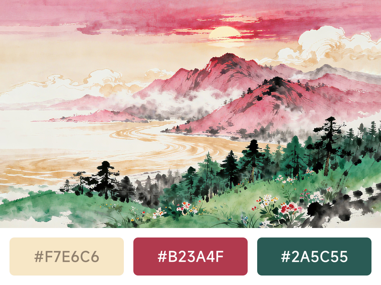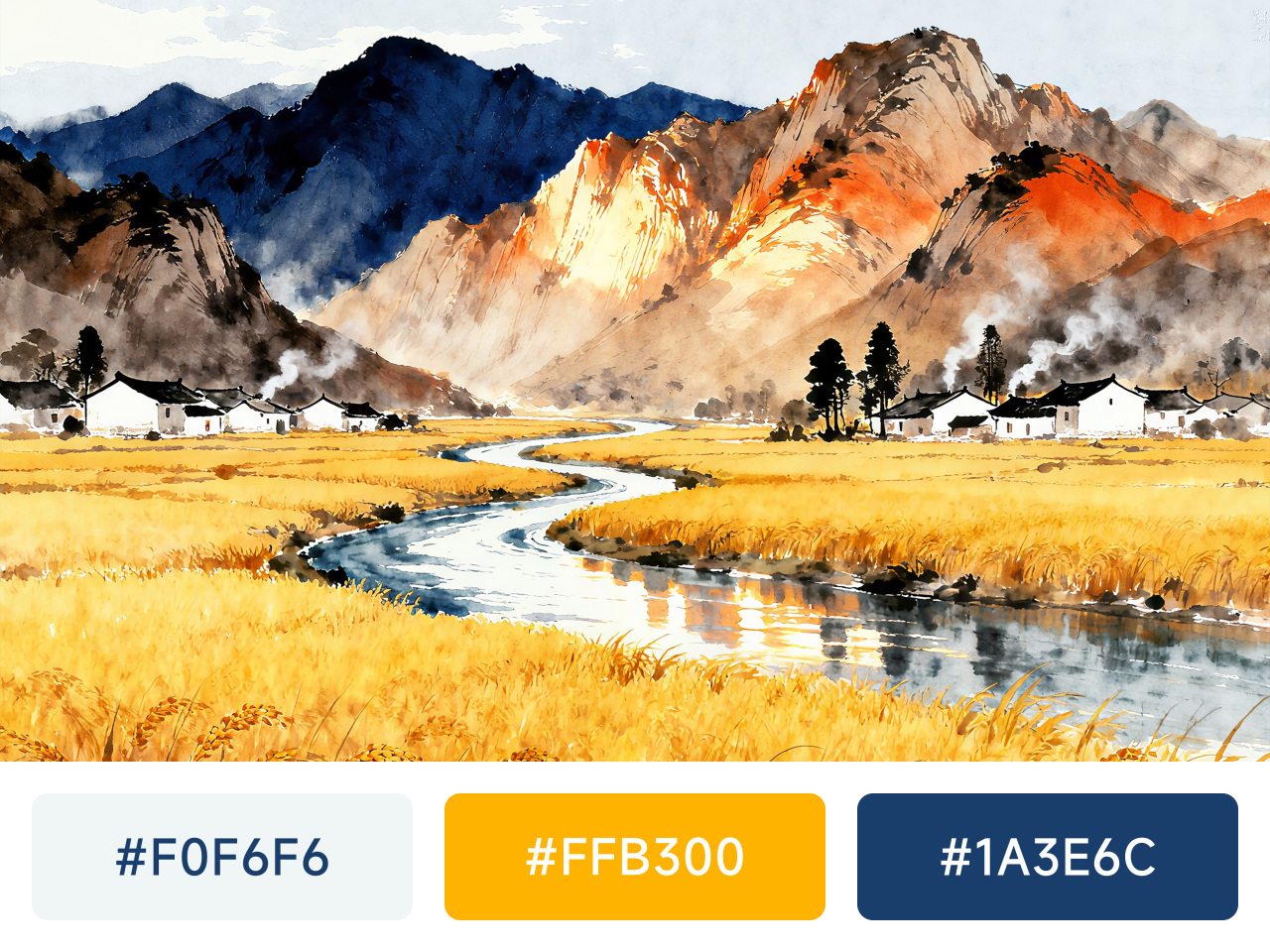 点缀色:黛蓝(#1A3E6C),似远山叠翠,增添层次。