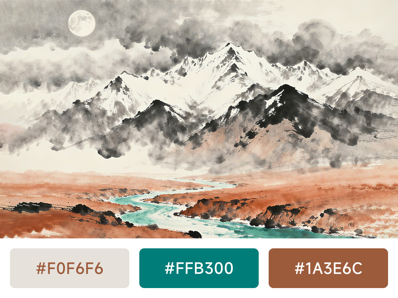 辅色:雪灰(#E5E1DB),似山间云雾,柔和过渡。