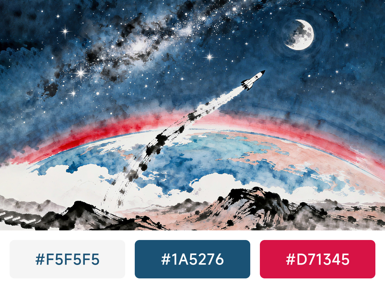 借现代航天精神与古典诗词意境,喻指祖国发展征程的浩瀚与浪漫。