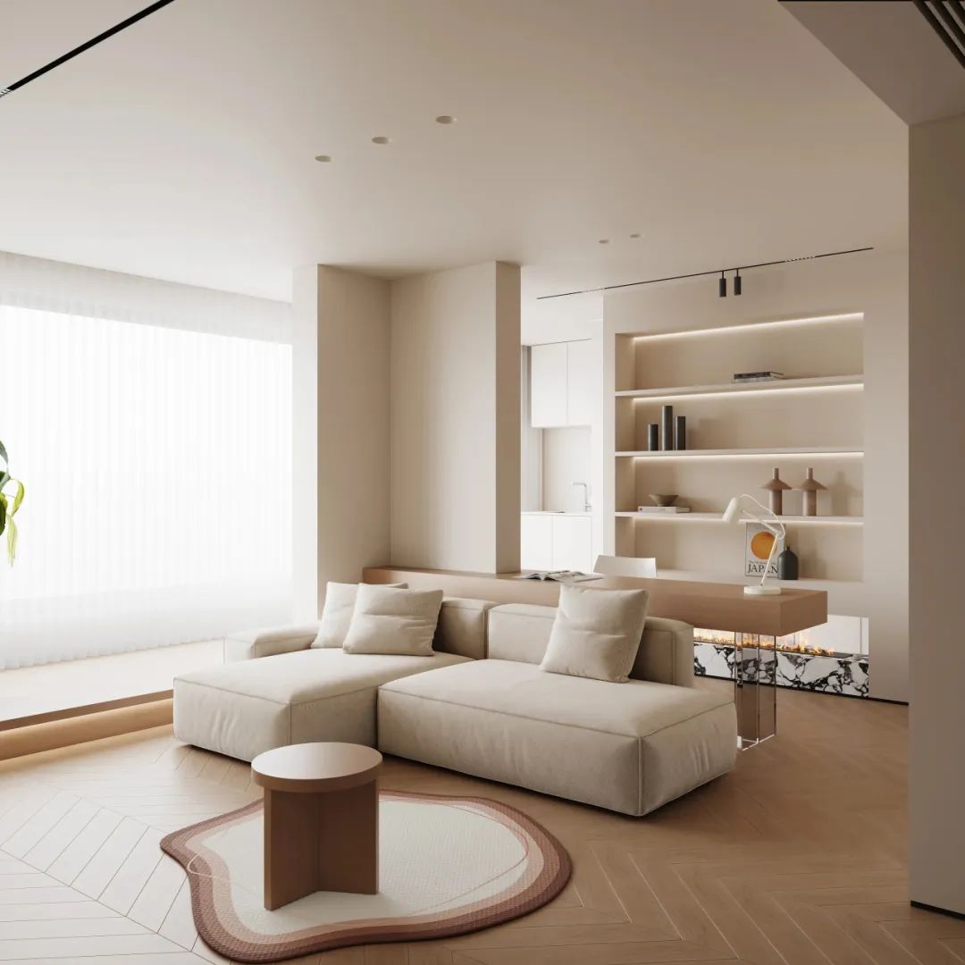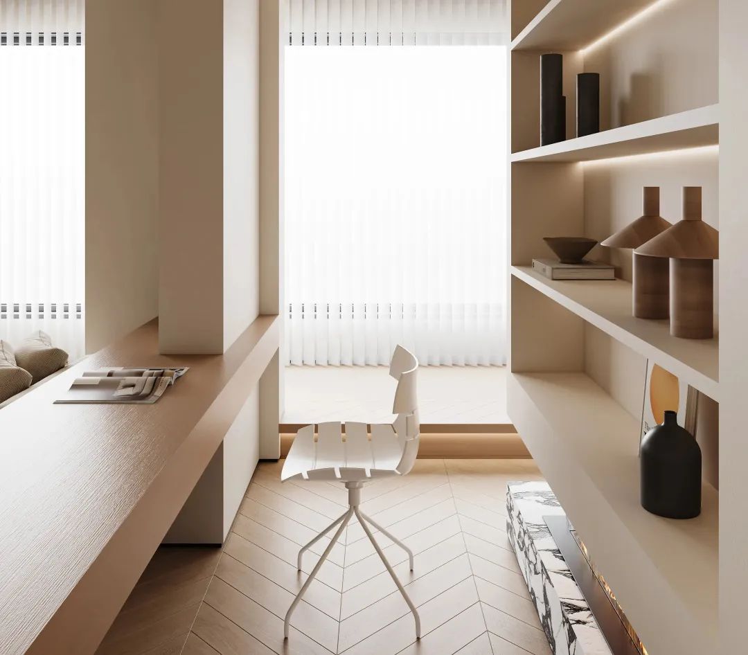 白色,自带干净纯洁的气质。白色对光线是最天然的吸引,赋予整体空间清爽、雅致感。