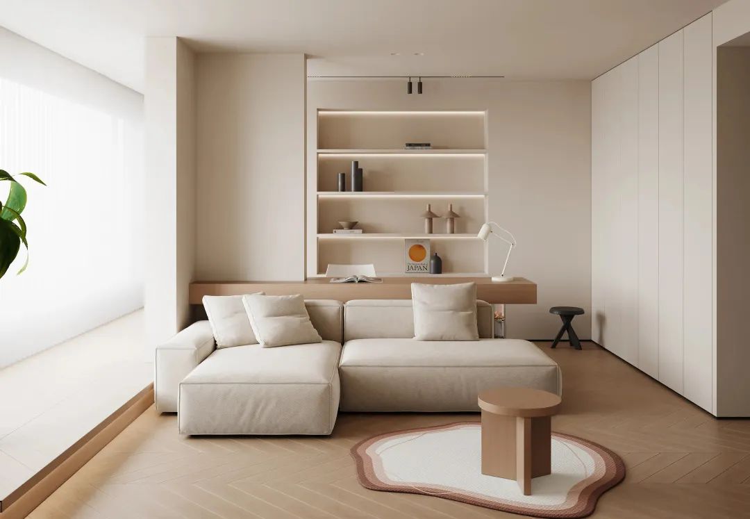 盐系北欧风设计搭配低饱和度的色彩,让视觉获得极度的舒适感,原木色、白色系、黑白灰、冷色系都是经典的几种配色方式。中性色能很好地起到柔和过渡的作用,瞬间让人回归本心。
