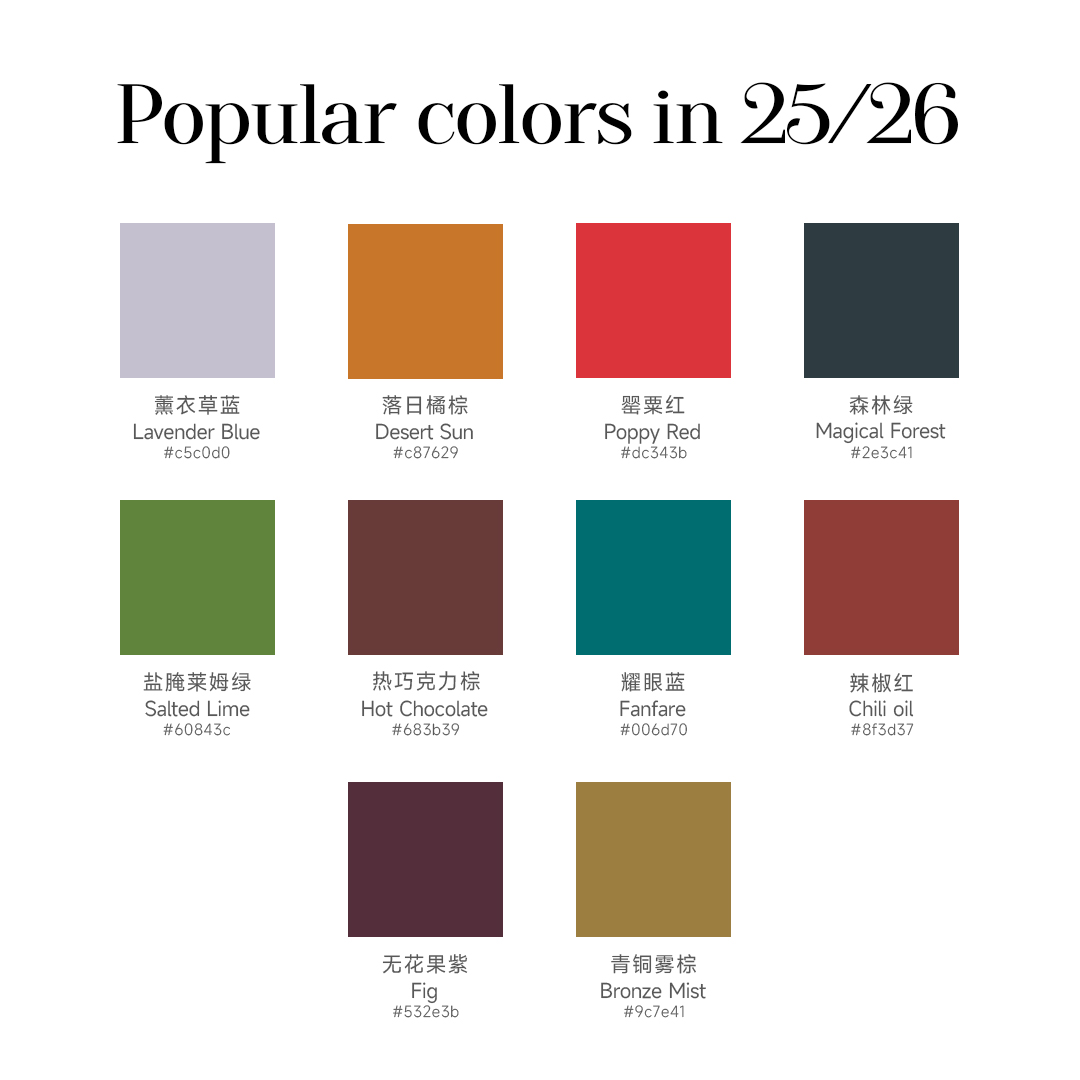 Bronze Mist青铜雾棕,其灵感源自古代青铜器经过岁月洗礼后形成的特殊色泽。这种色彩既不过于张扬,也不显得沉闷,它在暖调棕色的基底上,通过细微的红调与黄调平衡,营造出一种温暖、沉稳且富有质感的视觉效果。
