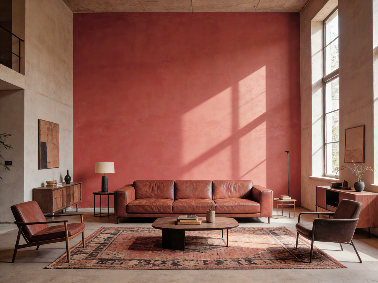 如何让这抹沉稳的大地之色在现代家居中焕发活力?关键在于构建富有层次与张力的色彩关系,使其温暖而不沉闷,厚重而不压抑。