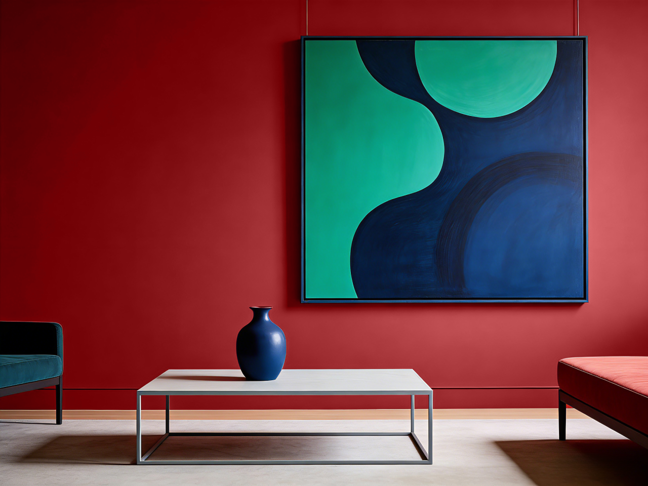 实践:点缀 「翠玉绿」 或 「海滨蓝」。例如,在熔岩红的空间中,放置一两把翠玉绿色的丝绒单椅,或悬挂一幅以海滨蓝为主调的抽象画。